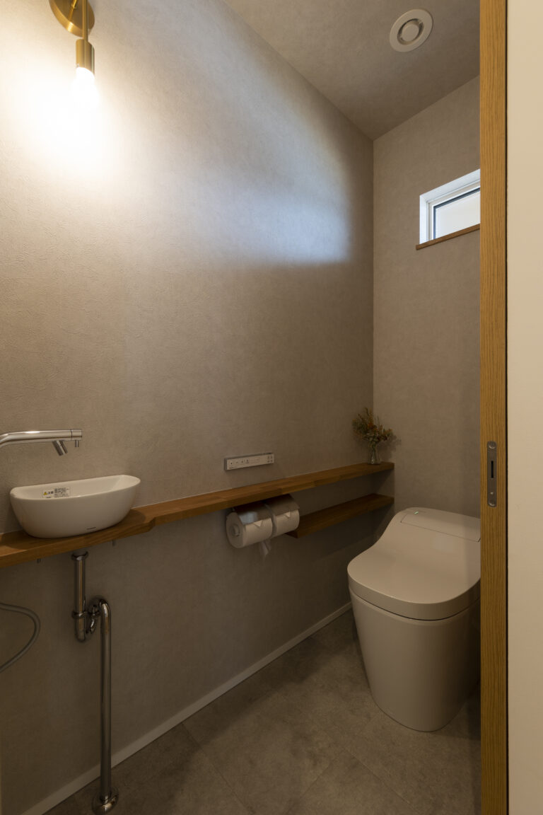 また、造作カウンターにスリムな手洗い器を設置し、すっきりと使いやすい空間に。